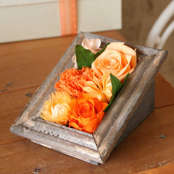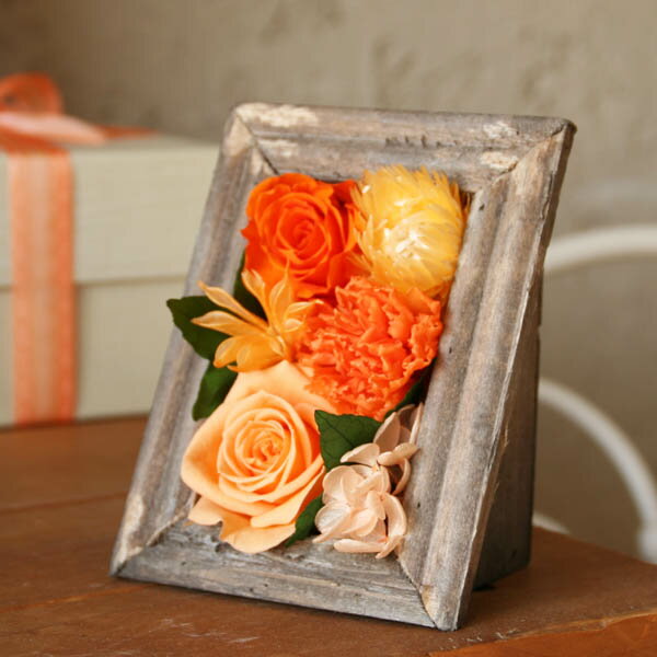 プリザーブドフラワーのミニフレーム&焼き菓子inギフトボックス(オレンジ) 額入りローズ&カーネーションとお菓子詰め合わせ【楽ギフ_包装】【楽ギフ_のし宛名】【楽ギフ_メッセ入力】【誕生日・結婚・お祝い・お礼に】【花とスイーツギフト】