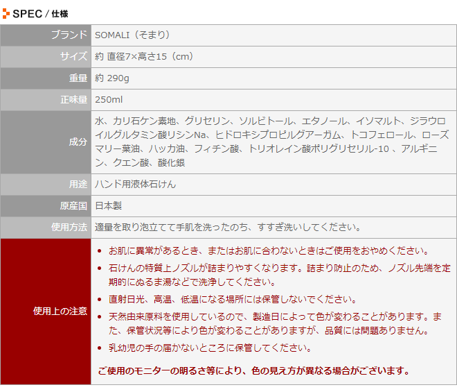 SOMALI そまり ハンドソープ 250ml ハンド用液体石けん 純石鹸 肌にやさしい 敏感肌 赤ちゃん 精油 天然精油 保湿